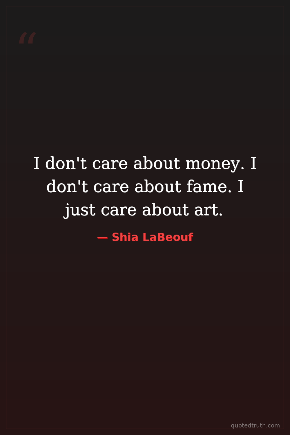I don't care about money. I don't care about fame. I just care about art.