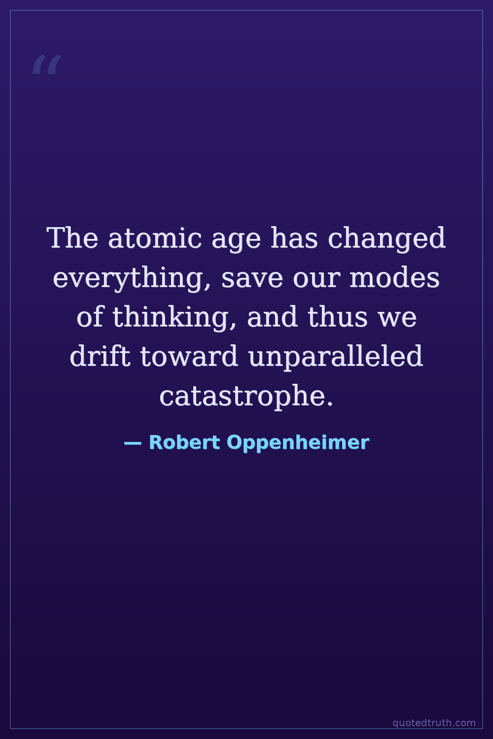 The atomic age has changed everything, save our modes of thinking, and thus we drift toward unparalleled catastrophe.
