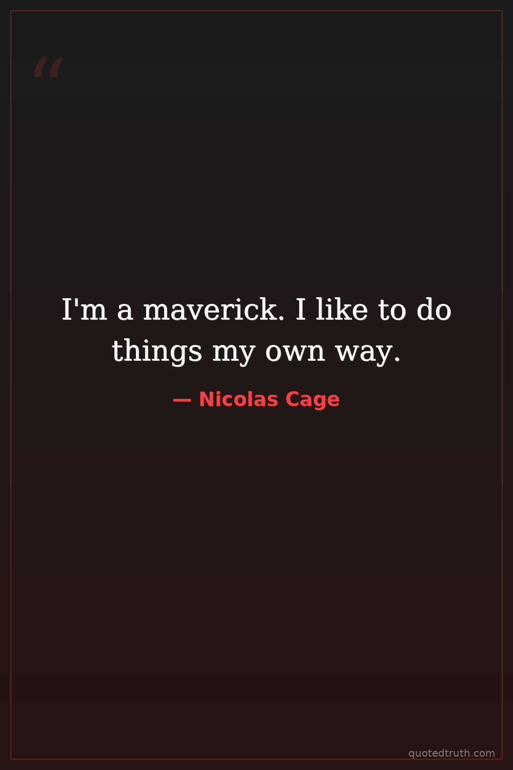 I'm a maverick. I like to do things my own way.