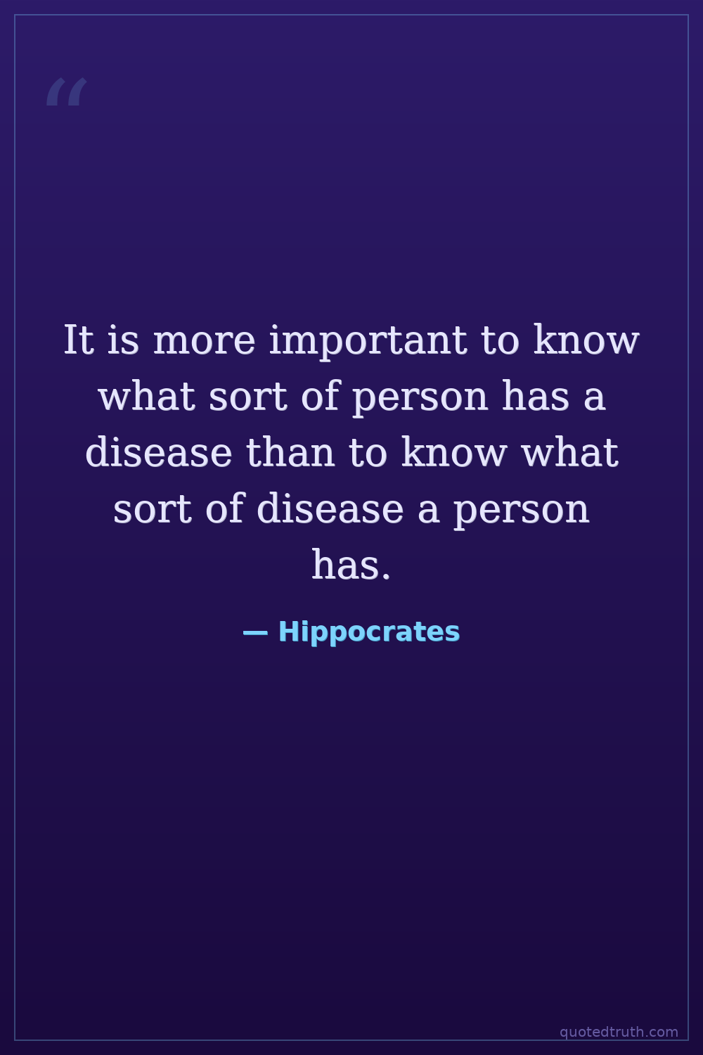 It is more important to know what sort of person has a disease than to know what sort of disease a person has.