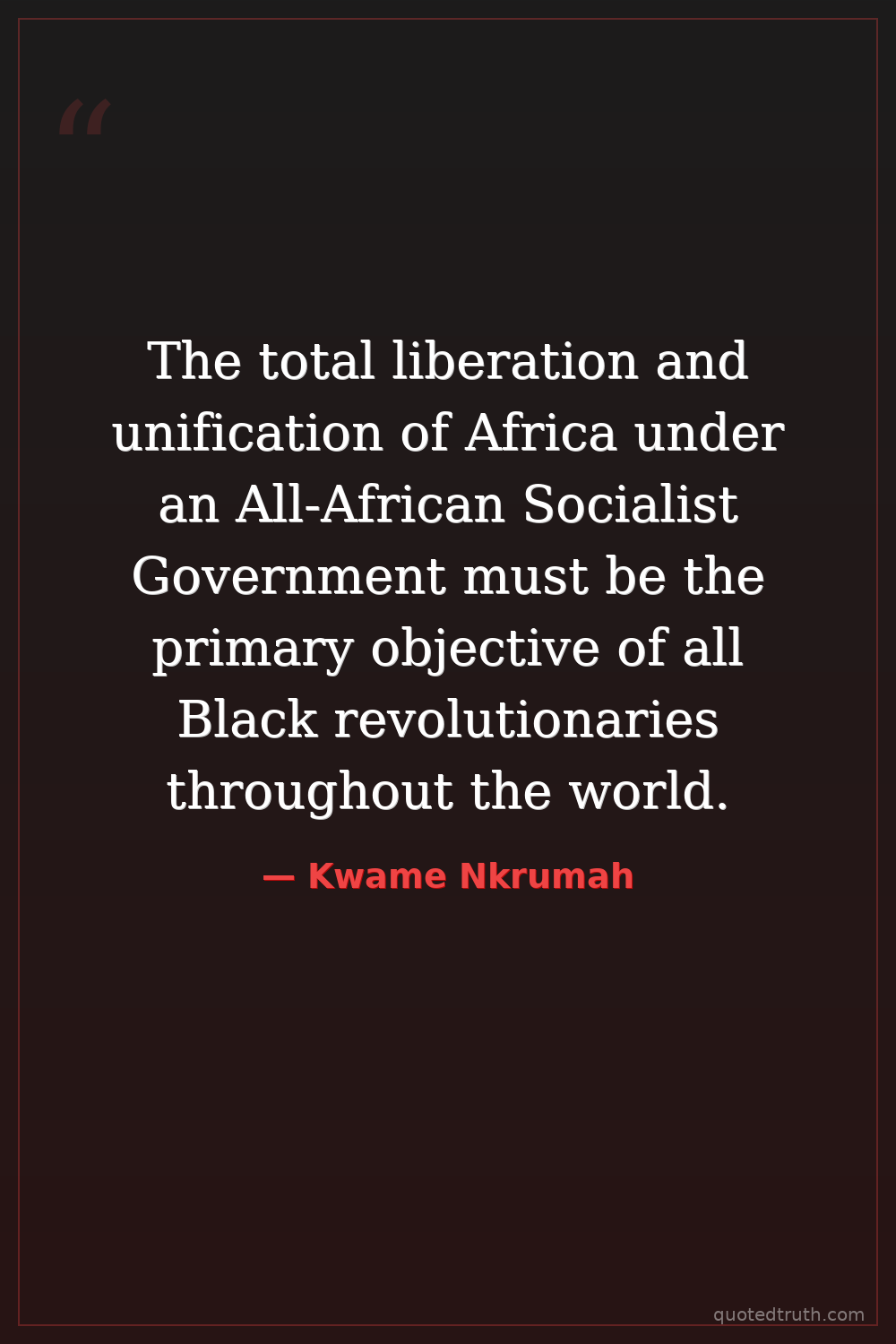 The total liberation and unification of Africa under an All-African Socialist Government must be the primary objective of all Black revolutionaries throughout the world.