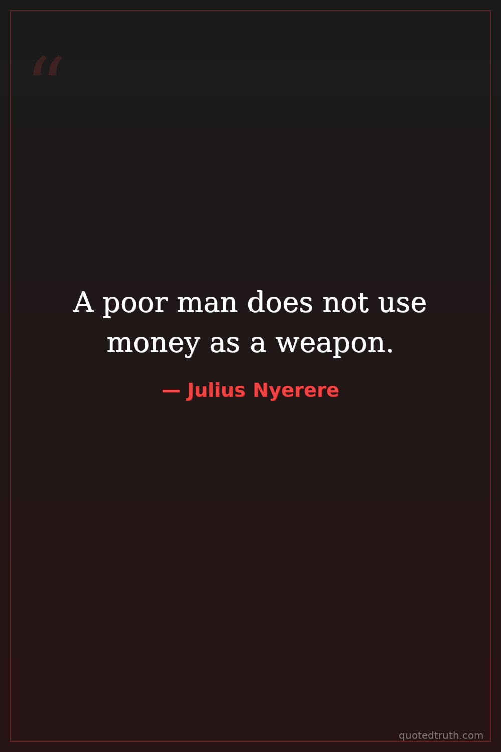 A poor man does not use money as a weapon.