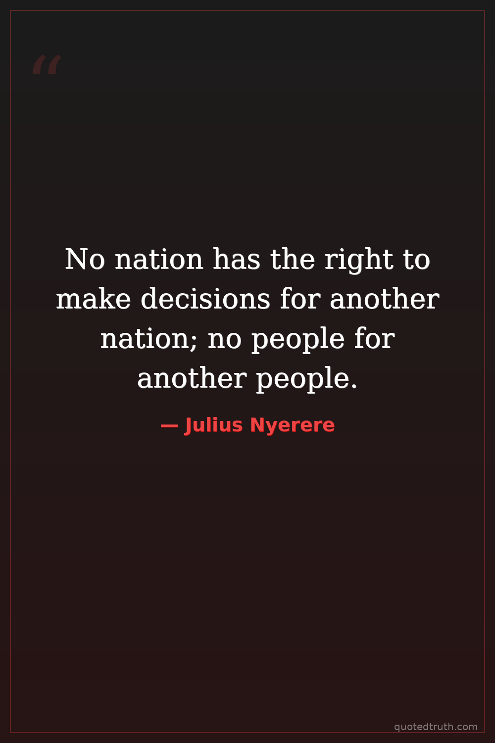 No nation has the right to make decisions for another nation; no people for another people.