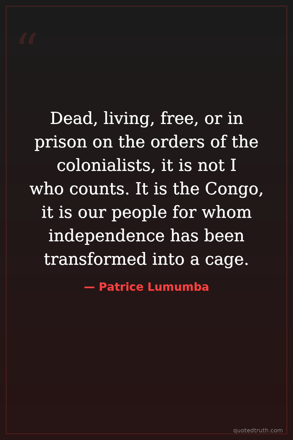 Dead, living, free, or in prison on the orders of the colonialists, it is not I who counts. It is the Congo, it is our people for whom independence has been transformed into a cage.