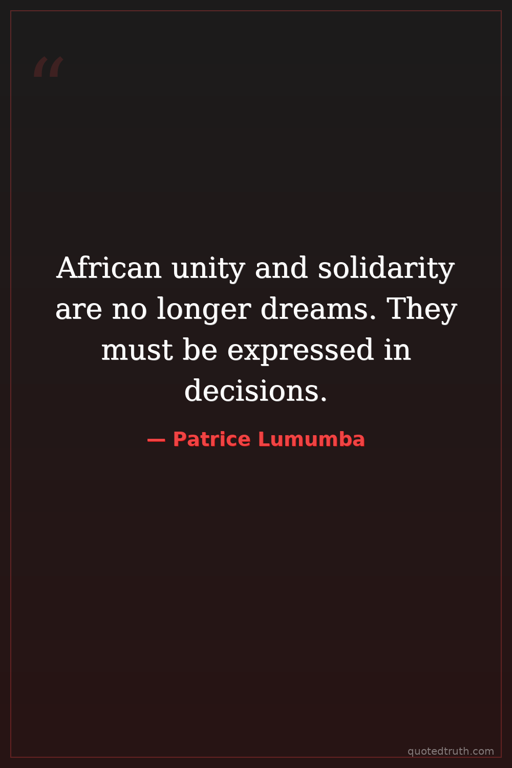 African unity and solidarity are no longer dreams. They must be expressed in decisions.