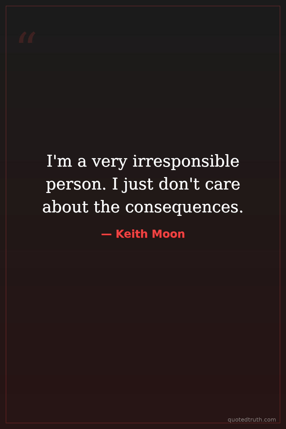 I'm a very irresponsible person. I just don't care about the consequences.