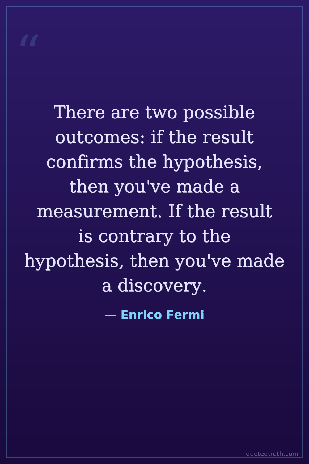 There are two possible outcomes: if the result confirms the hypothesis, then you've made a measurement. If the result is contrary to the hypothesis, then you've made a discovery.