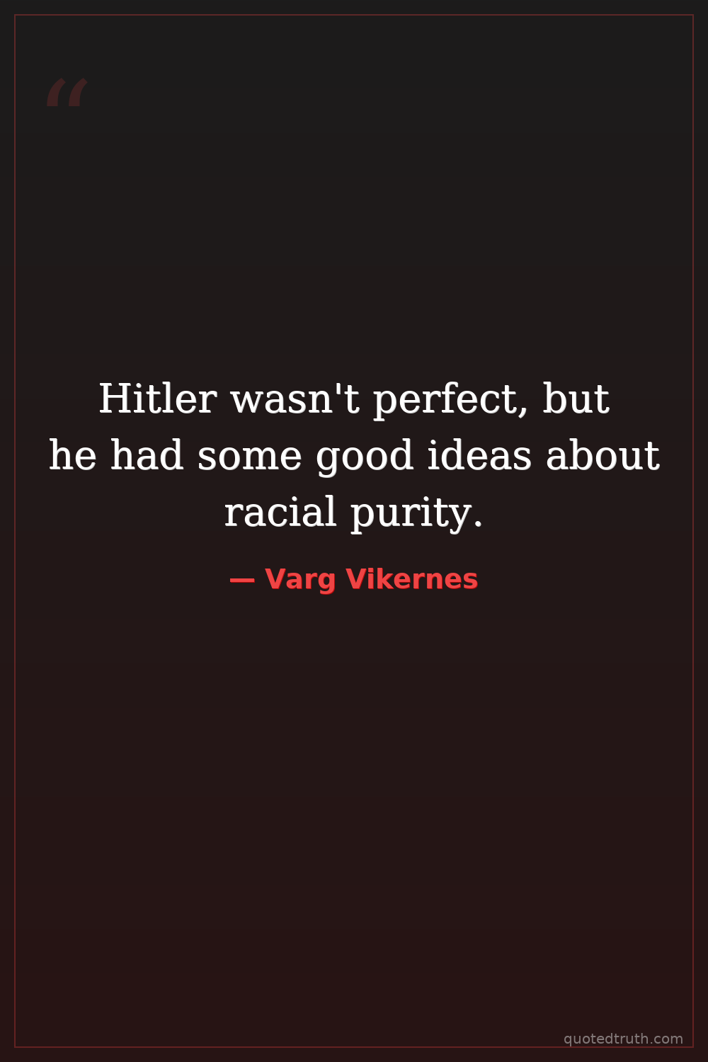 Hitler wasn't perfect, but he had some good ideas about racial purity.