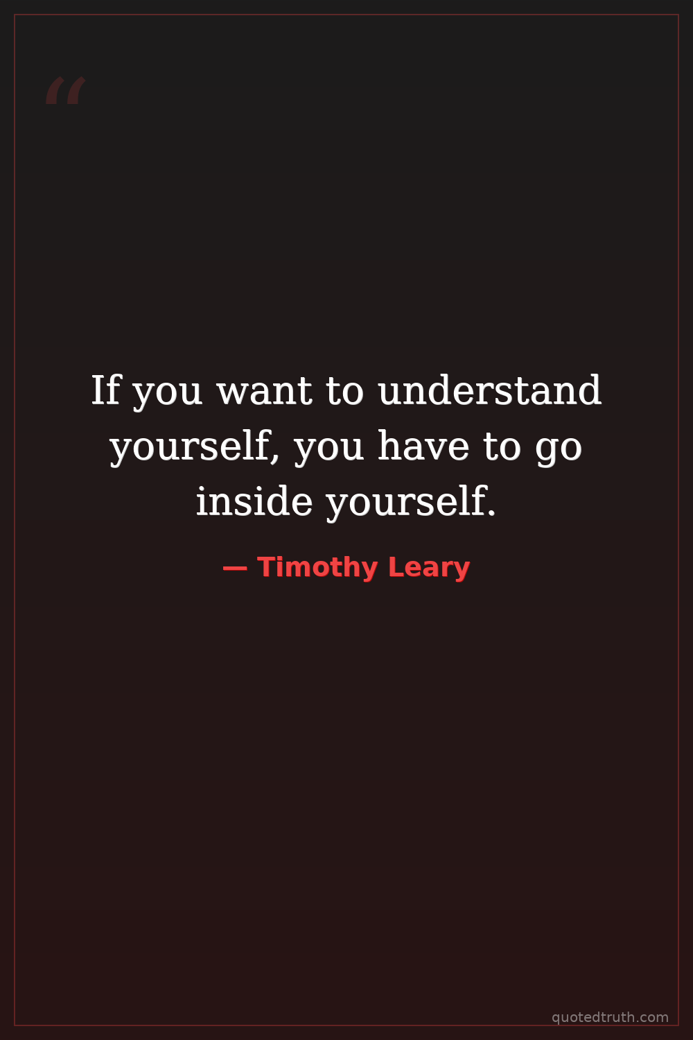 If you want to understand yourself, you have to go inside yourself.