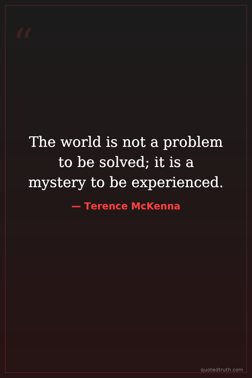 The world is not a problem to be solved; it is a mystery to be experienced.