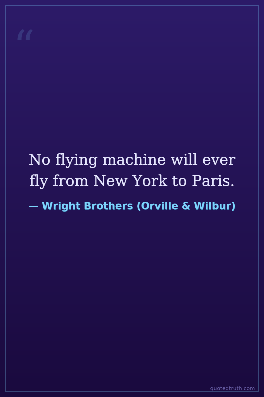 No flying machine will ever fly from New York to Paris.