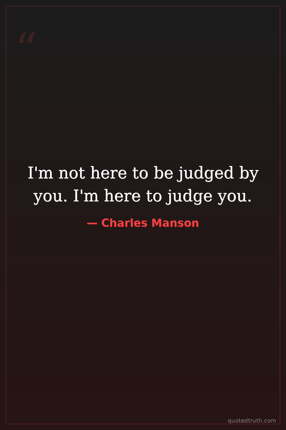 I'm not here to be judged by you. I'm here to judge you.