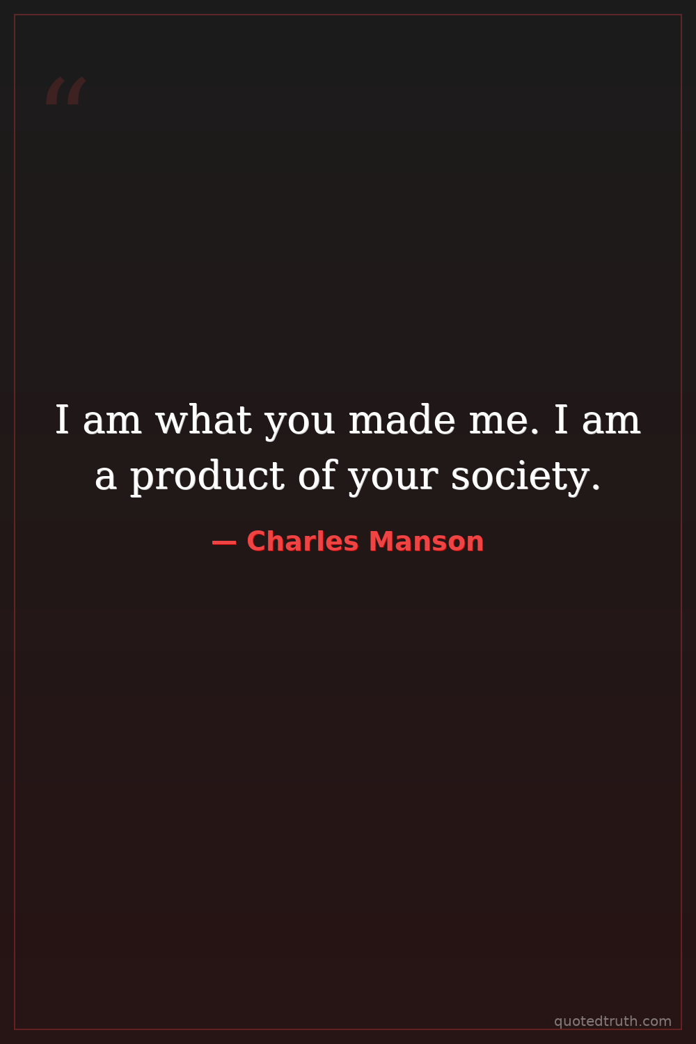 I am what you made me. I am a product of your society.