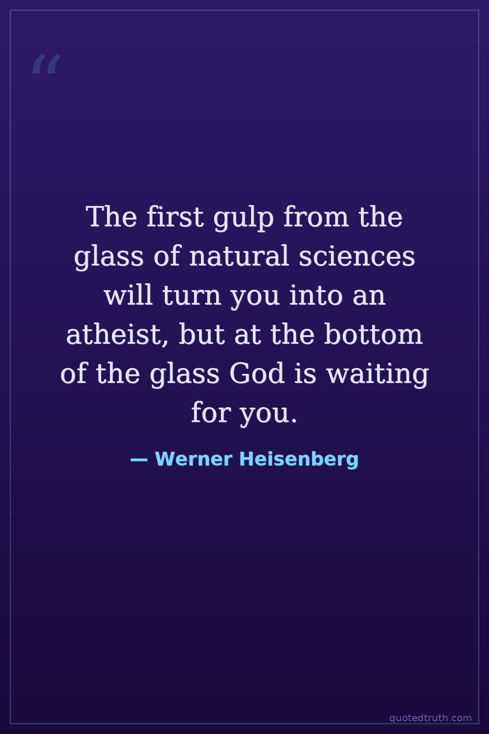 The first gulp from the glass of natural sciences will turn you into an atheist, but at the bottom of the glass God is waiting for you.