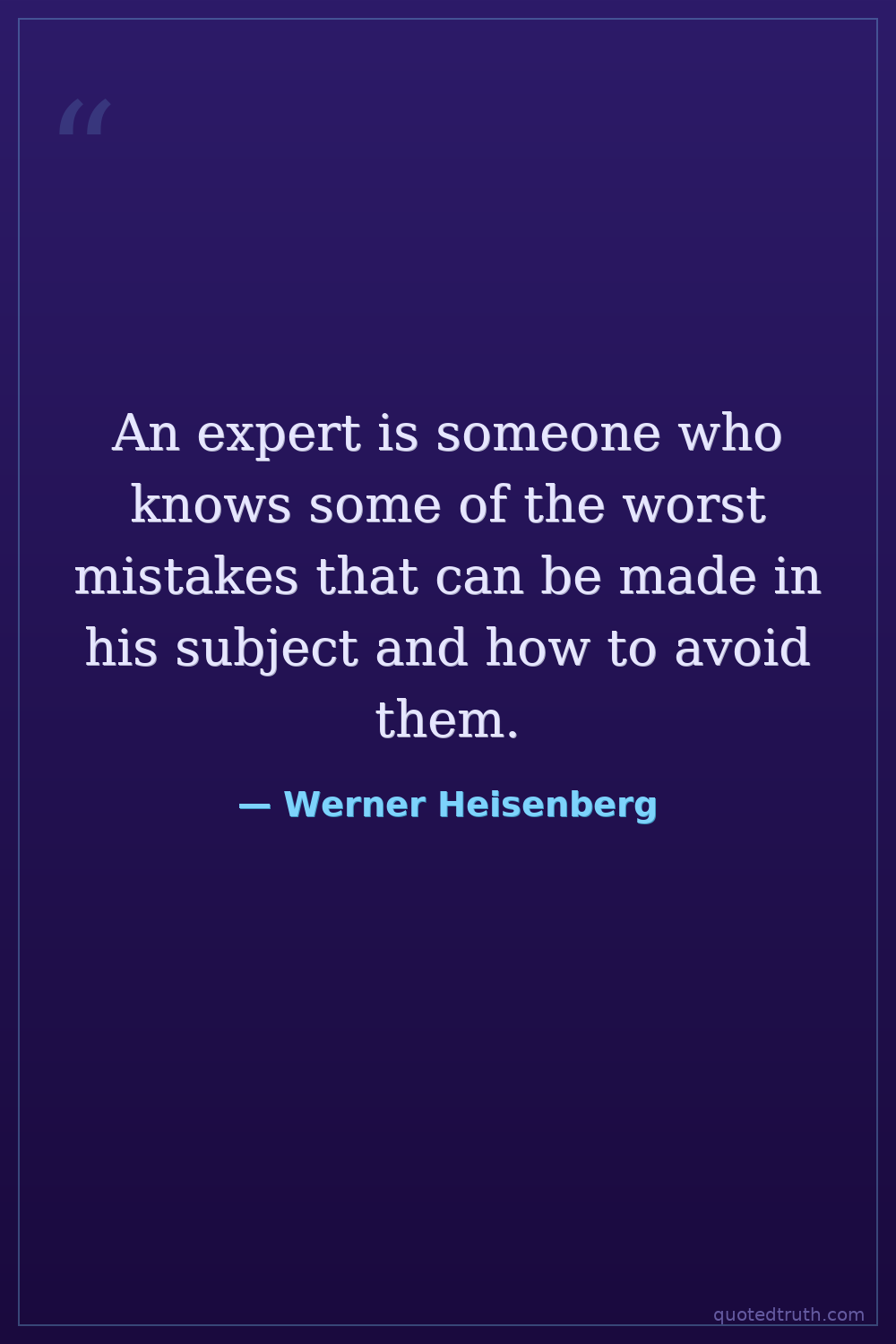 An expert is someone who knows some of the worst mistakes that can be made in his subject and how to avoid them.