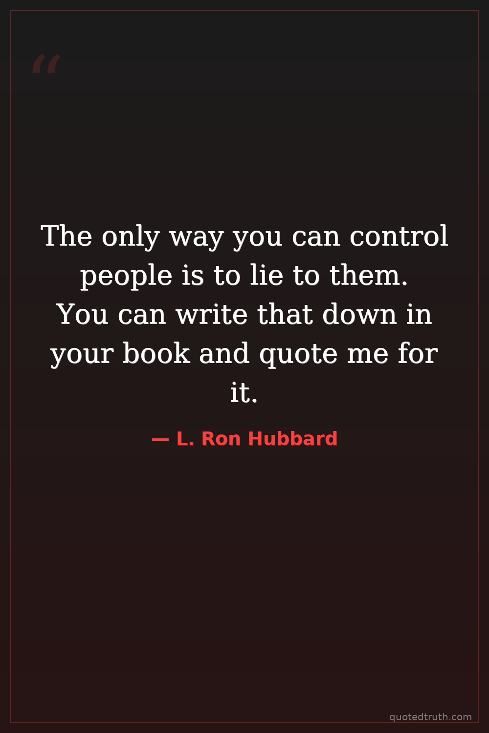The only way you can control people is to lie to them. You can write that down in your book and quote me for it.