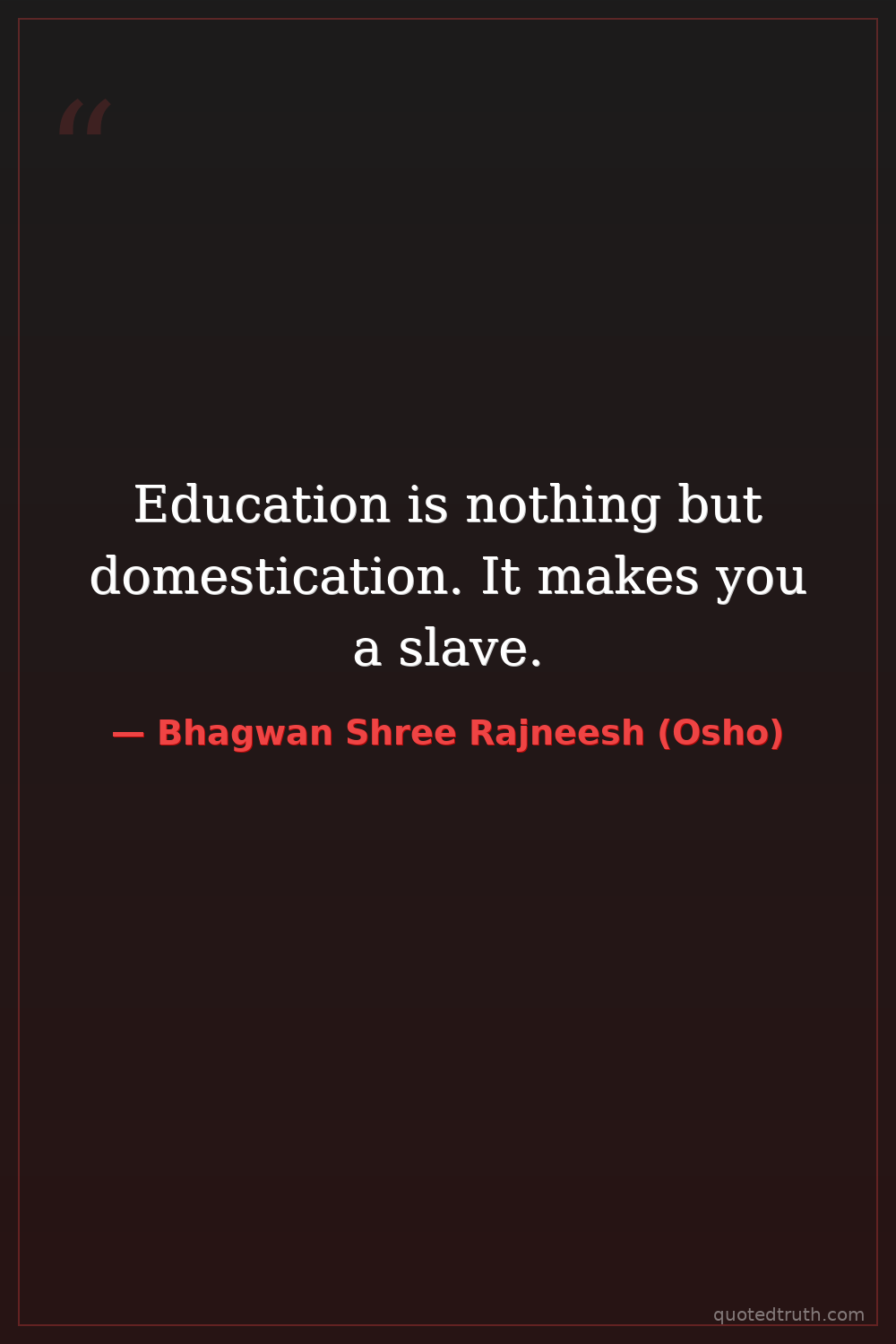 Education is nothing but domestication. It makes you a slave.