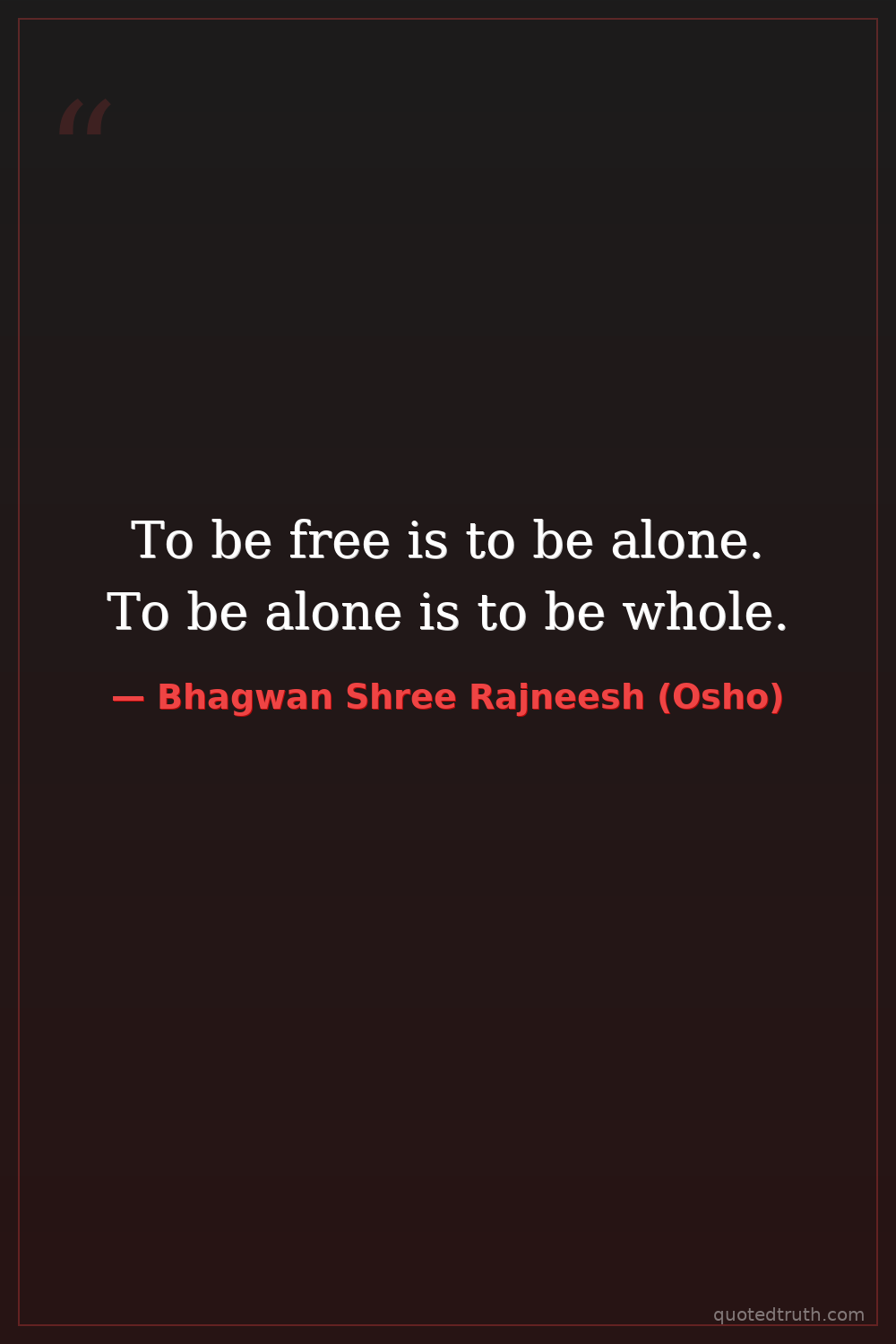 To be free is to be alone. To be alone is to be whole.