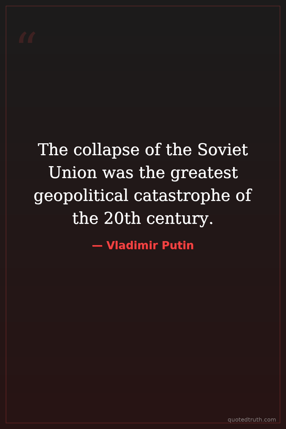 The collapse of the Soviet Union was the greatest geopolitical catastrophe of the 20th century.