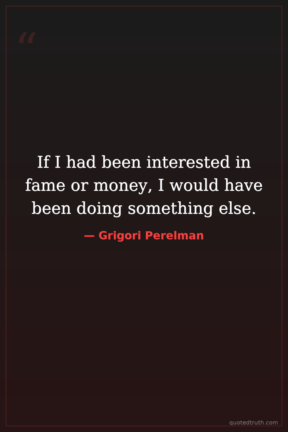 Strange & Unusual"I don't need money. I don't need fame. I don't want to be a mathematical hero. I'm not a hero."