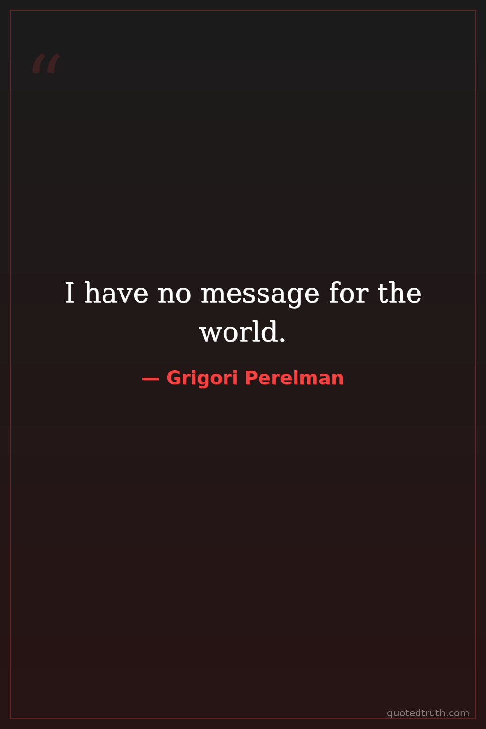 "The main reason is that I am not satisfied with the organization of the mathematical community. It is not fair. I am not going to be a part of it."
