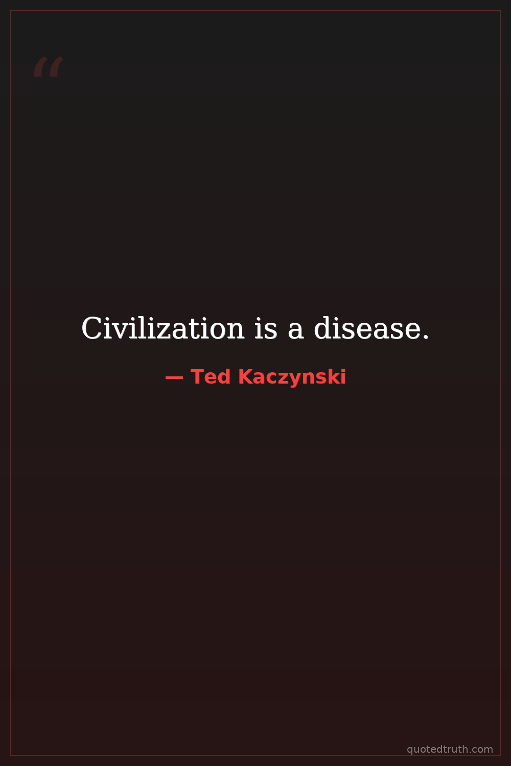 "Primitive societies are characterized by a sense of community, a common purpose, and a direct connection to nature. Modern industrial society has none of these things."