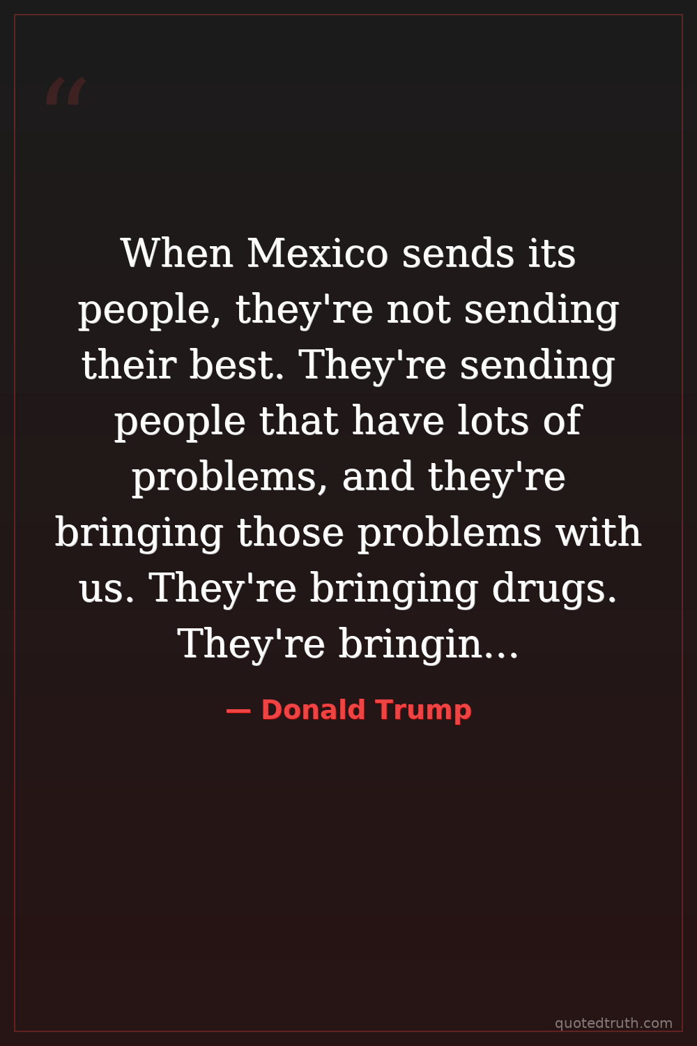 When Mexico sends its people, they're not sending their best. They're sending people that have lots of problems, and they're bringing those problems with us. They're bringing drugs. They're bringing crime. They're rapists. And some, I assume, are good people.