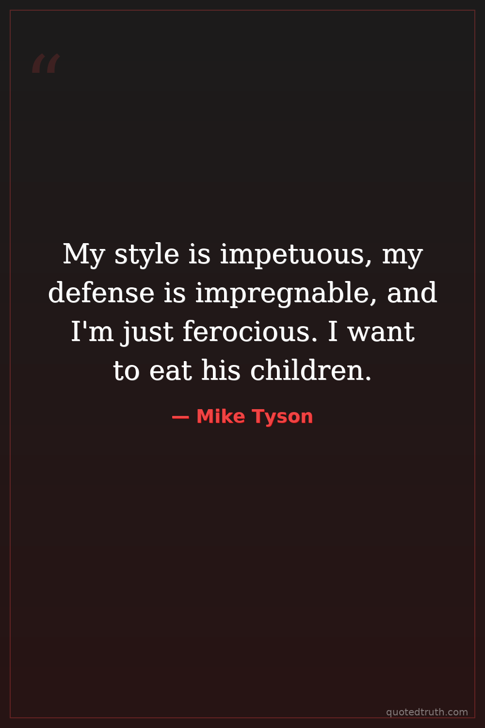 My style is impetuous, my defense is impregnable, and I'm just ferocious. I want to eat his children.