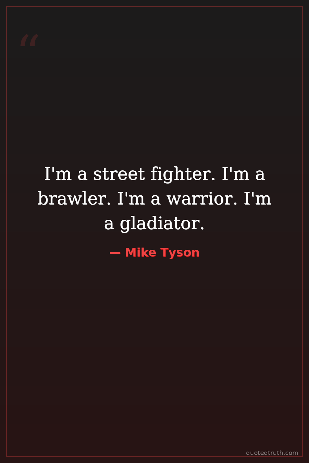 I'm a street fighter. I'm a brawler. I'm a warrior. I'm a gladiator.