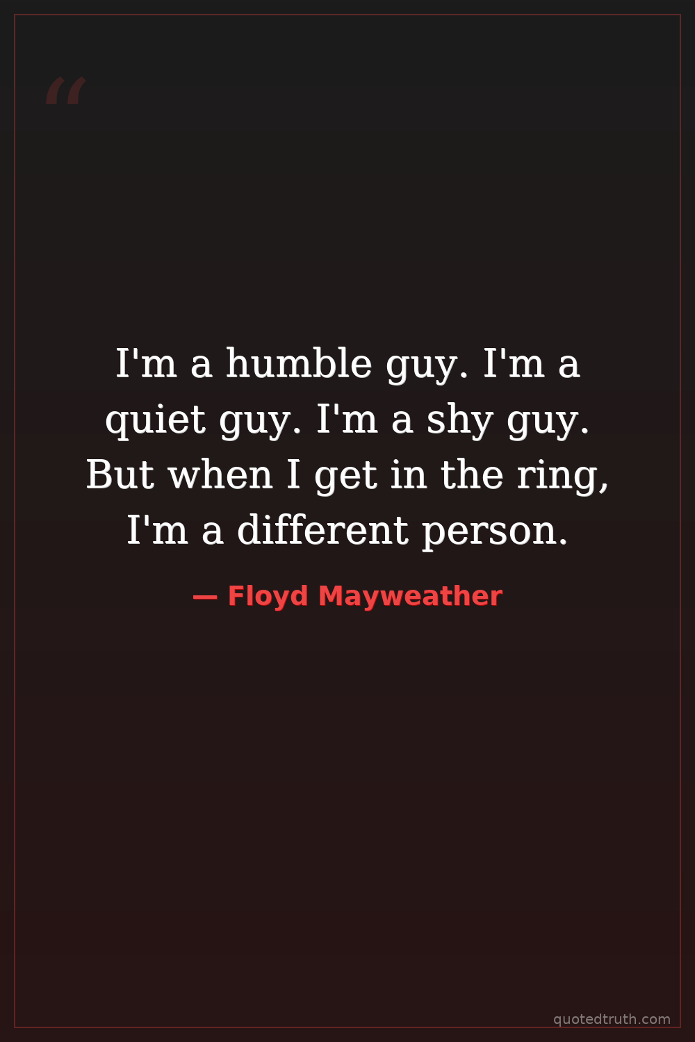 I'm a humble guy. I'm a quiet guy. I'm a shy guy. But when I get in the ring, I'm a different person.