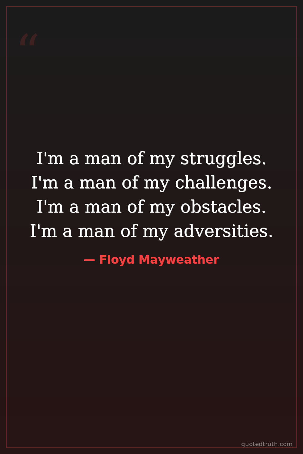 I'm a man of my struggles. I'm a man of my challenges. I'm a man of my obstacles. I'm a man of my adversities.