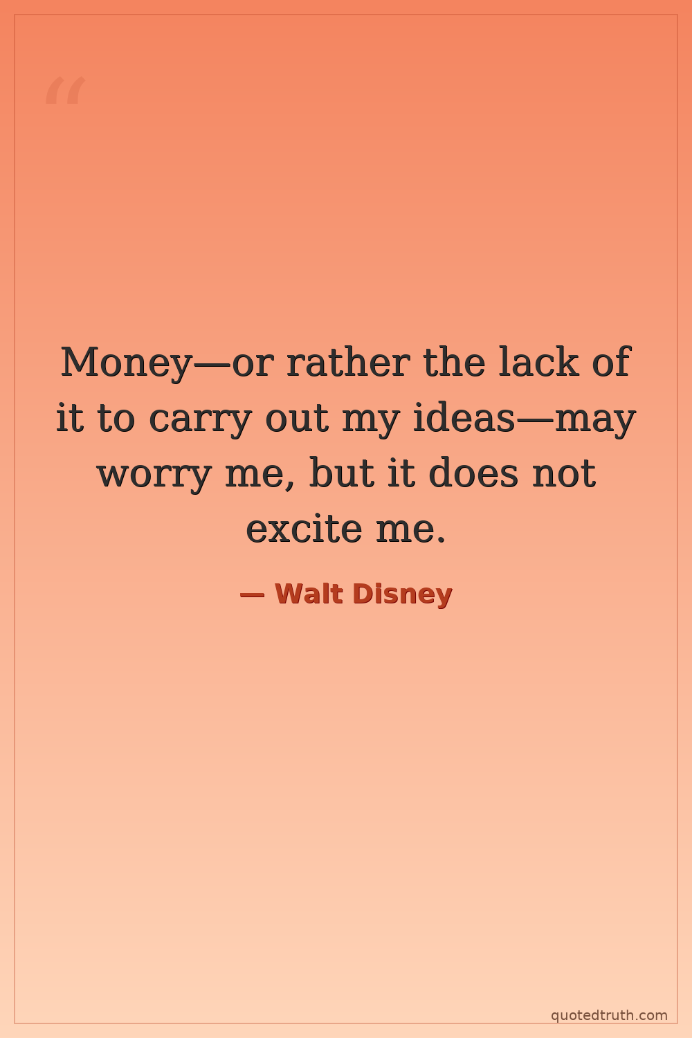 Money—or rather the lack of it to carry out my ideas—may worry me, but it does not excite me.