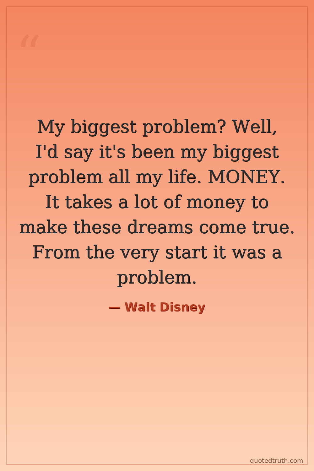 My biggest problem? Well, I'd say it's been my biggest problem all my life. MONEY. It takes a lot of money to make these dreams come true. From the very start it was a problem.