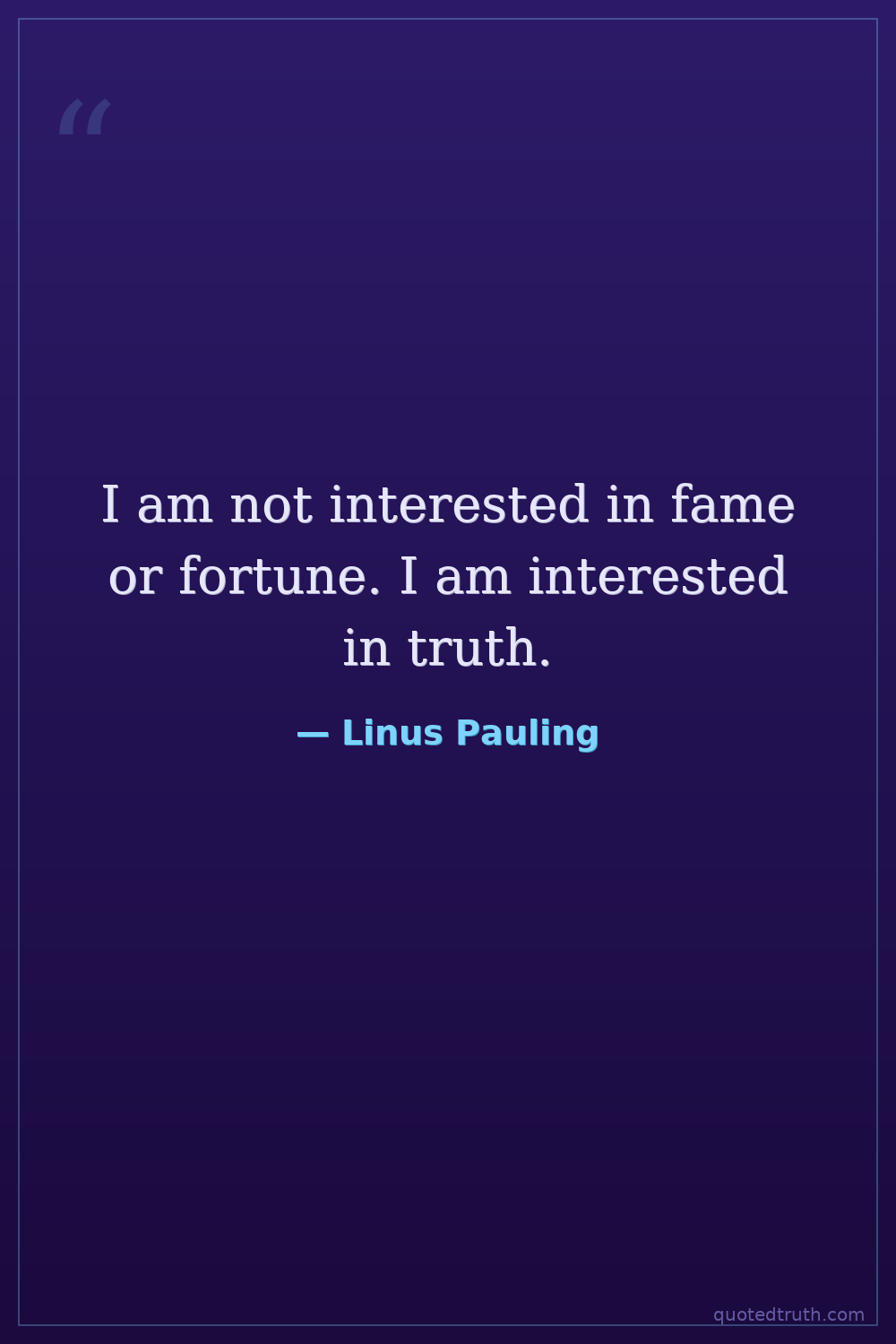 I am not interested in fame or fortune. I am interested in truth.