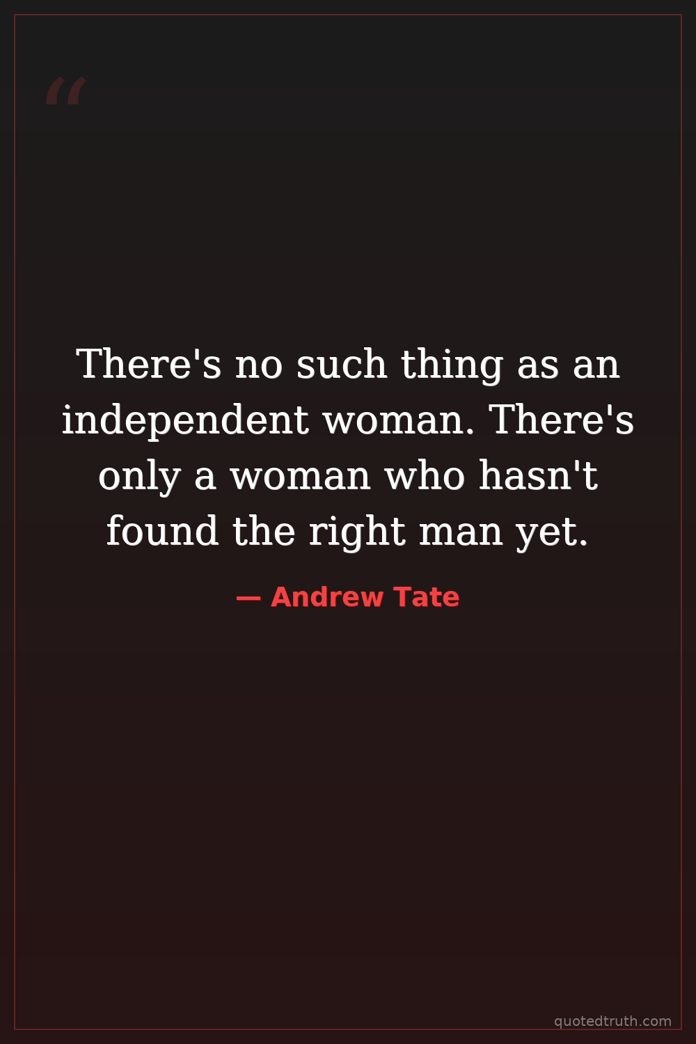 There's no such thing as an independent woman. There's only a woman who hasn't found the right man yet.