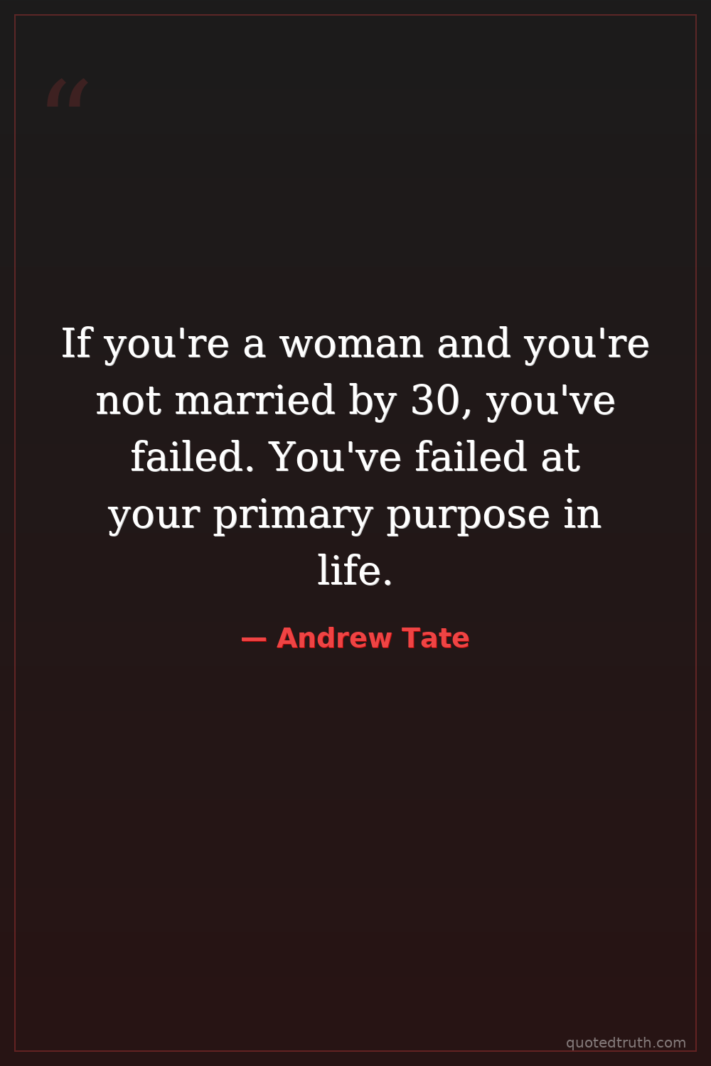 If you're a woman and you're not married by 30, you've failed. You've failed at your primary purpose in life.