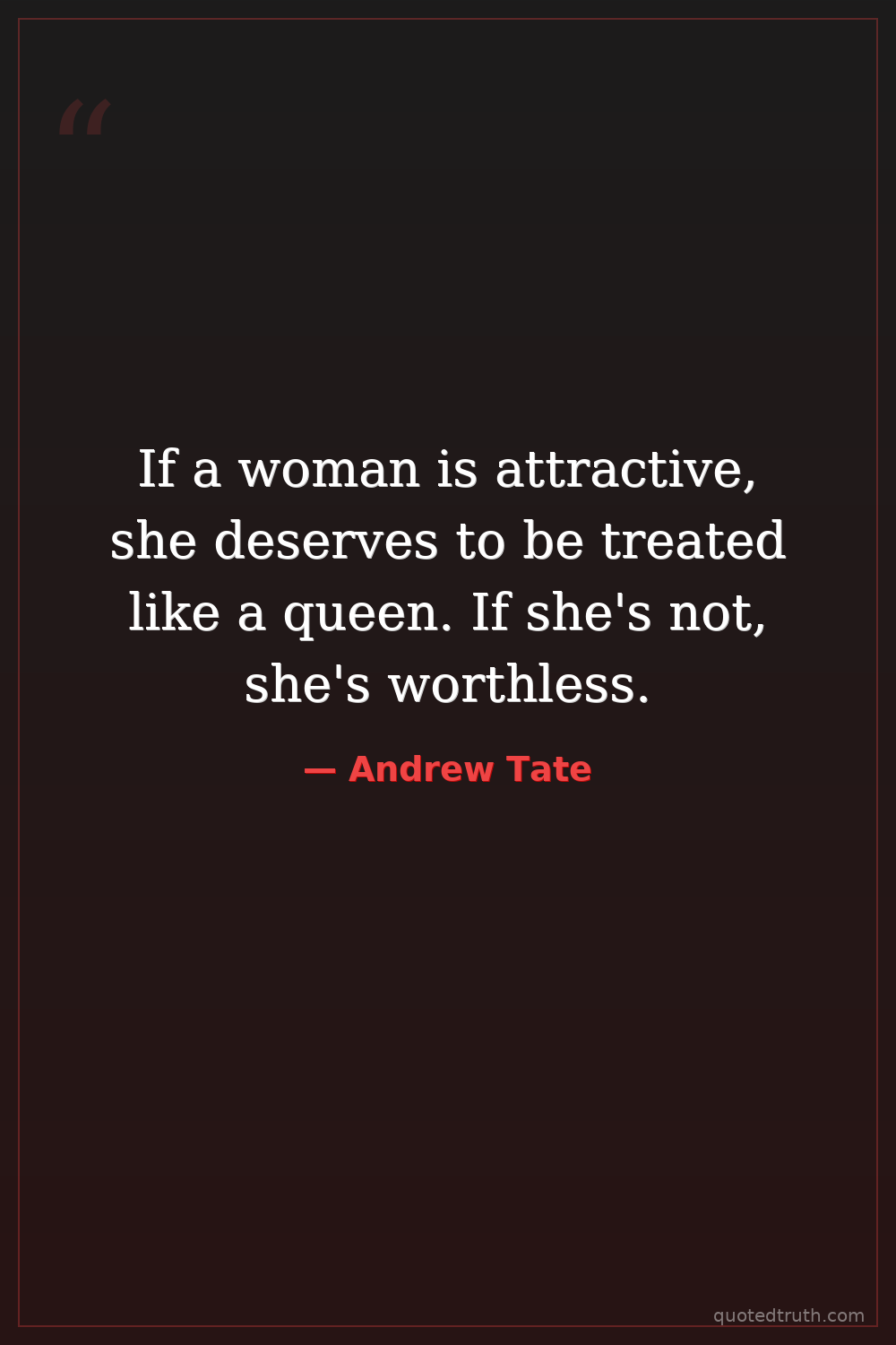 If a woman is attractive, she deserves to be treated like a queen. If she's not, she's worthless.