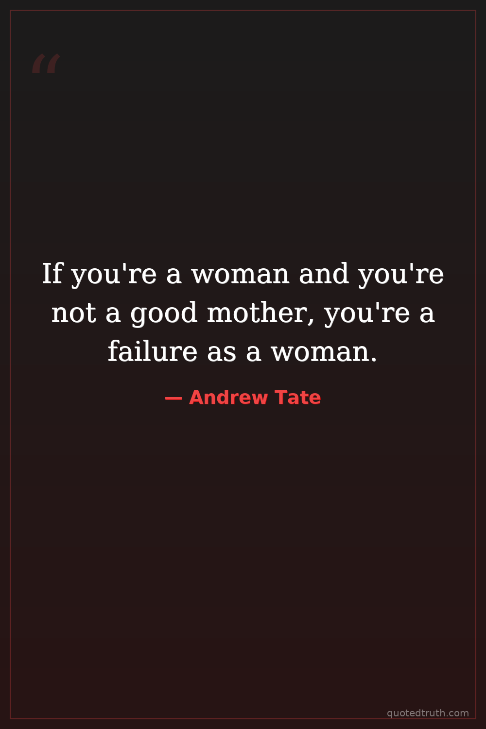 Controversial"I am a misogynist. I am a realist. I am a man of tradition. I believe that women belong in the house, they belong with children, and they belong being feminine."