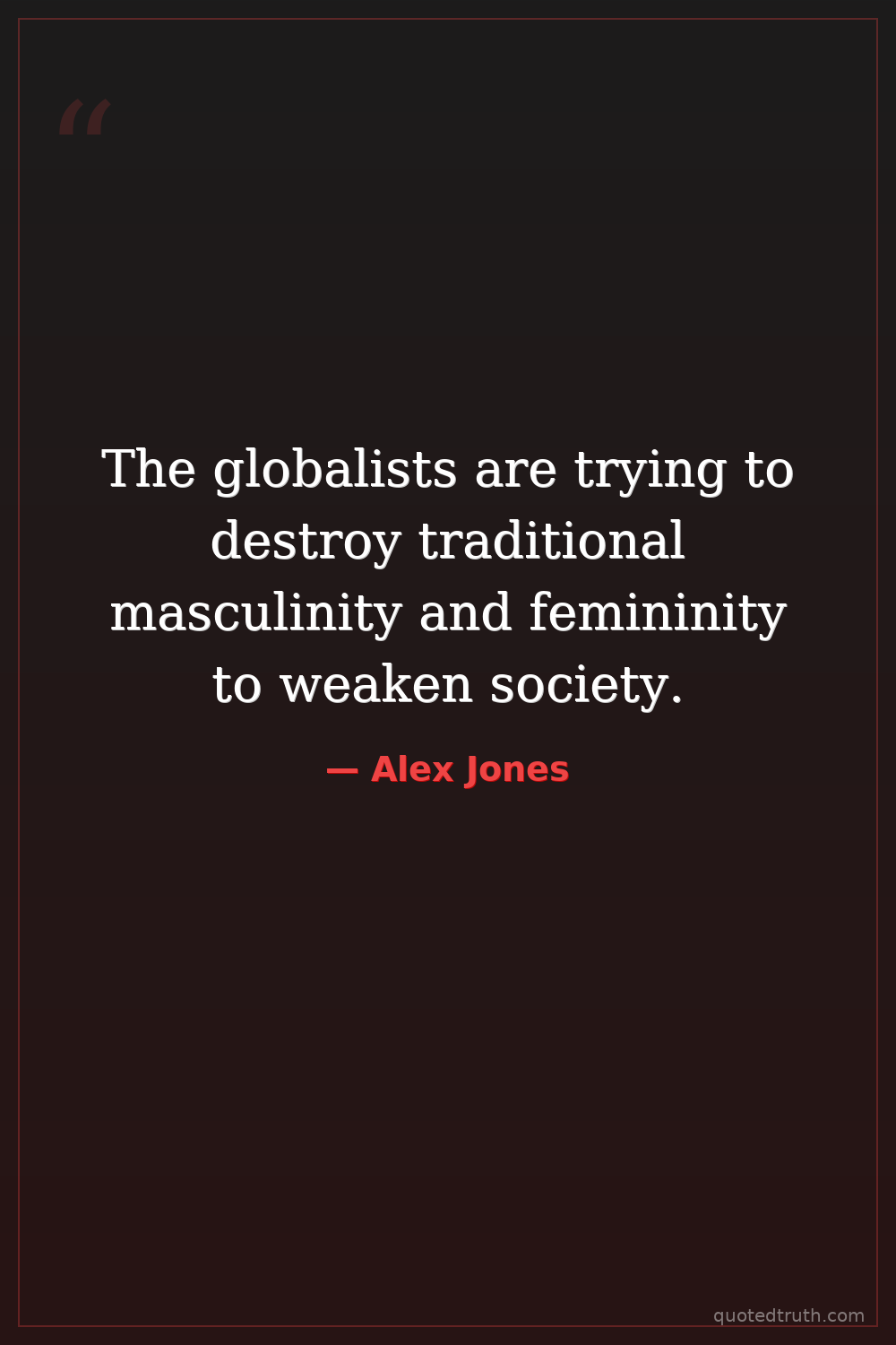 The globalists are trying to destroy traditional masculinity and femininity to weaken society.