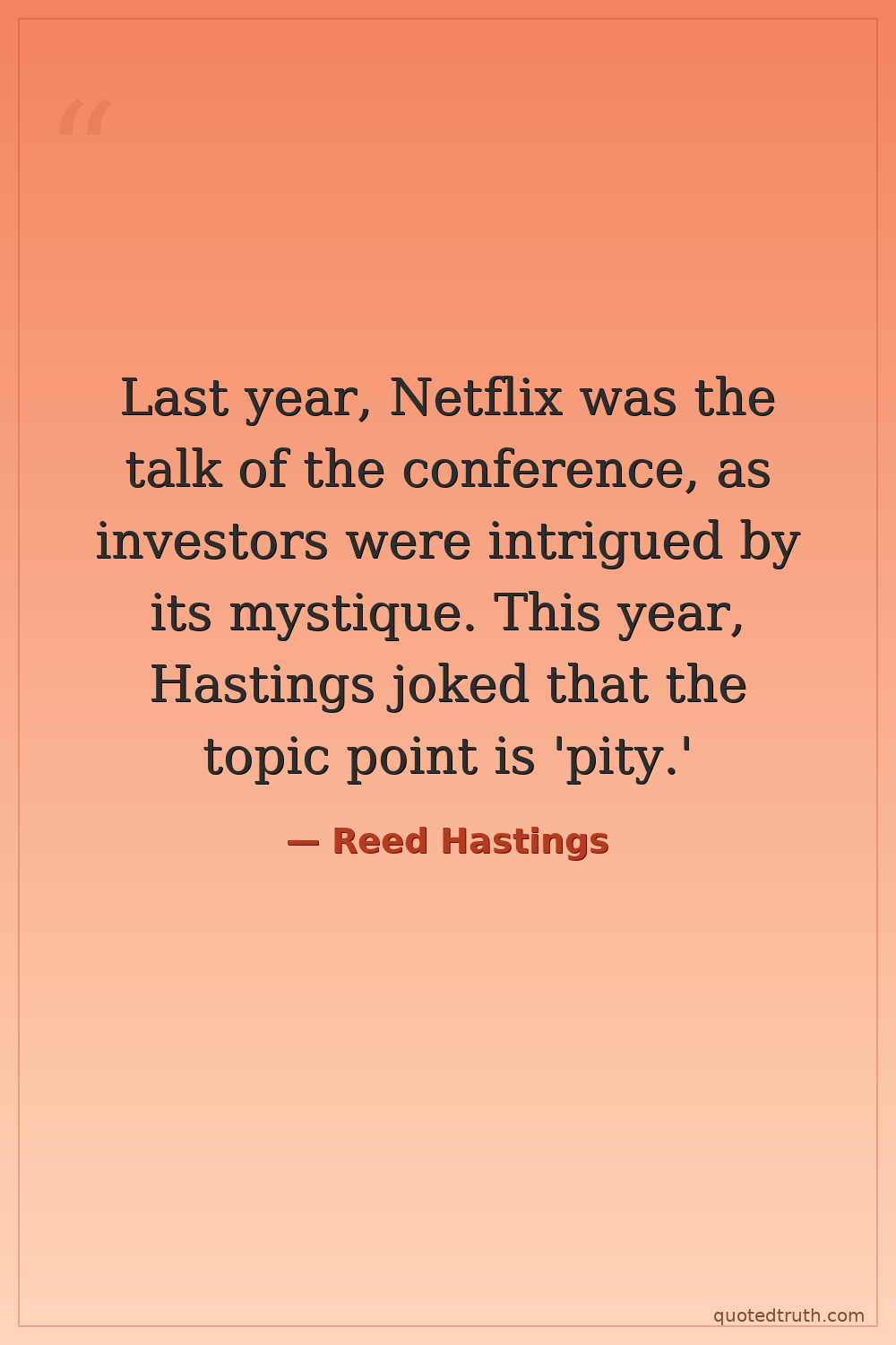 Last year, Netflix was the talk of the conference, as investors were intrigued by its mystique. This year, Hastings joked that the topic point is 'pity.'