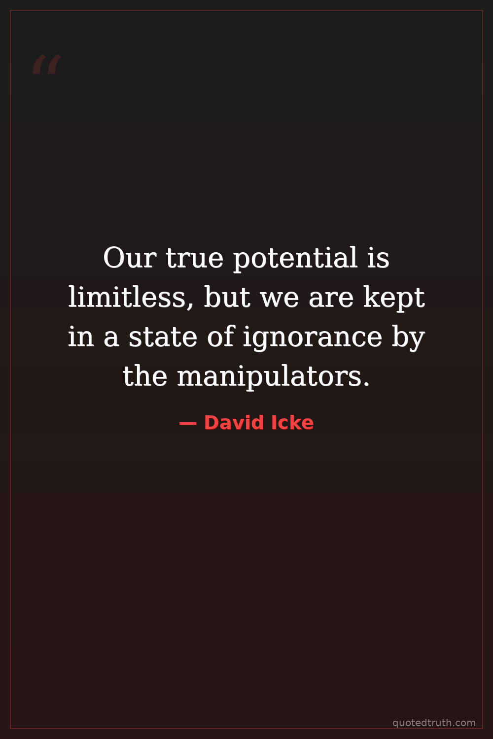 Our true potential is limitless, but we are kept in a state of ignorance by the manipulators.