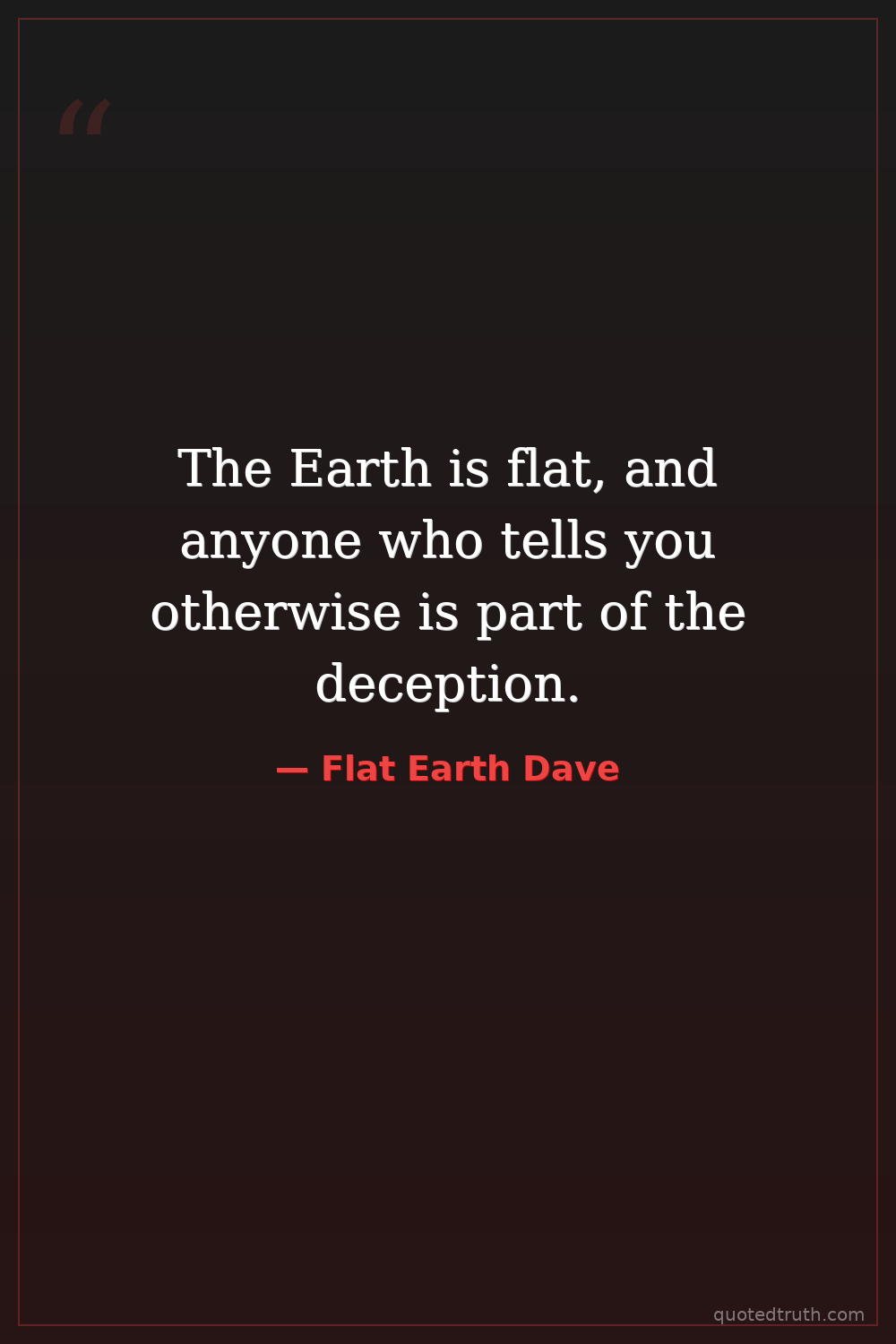The Earth is flat, and anyone who tells you otherwise is part of the deception.