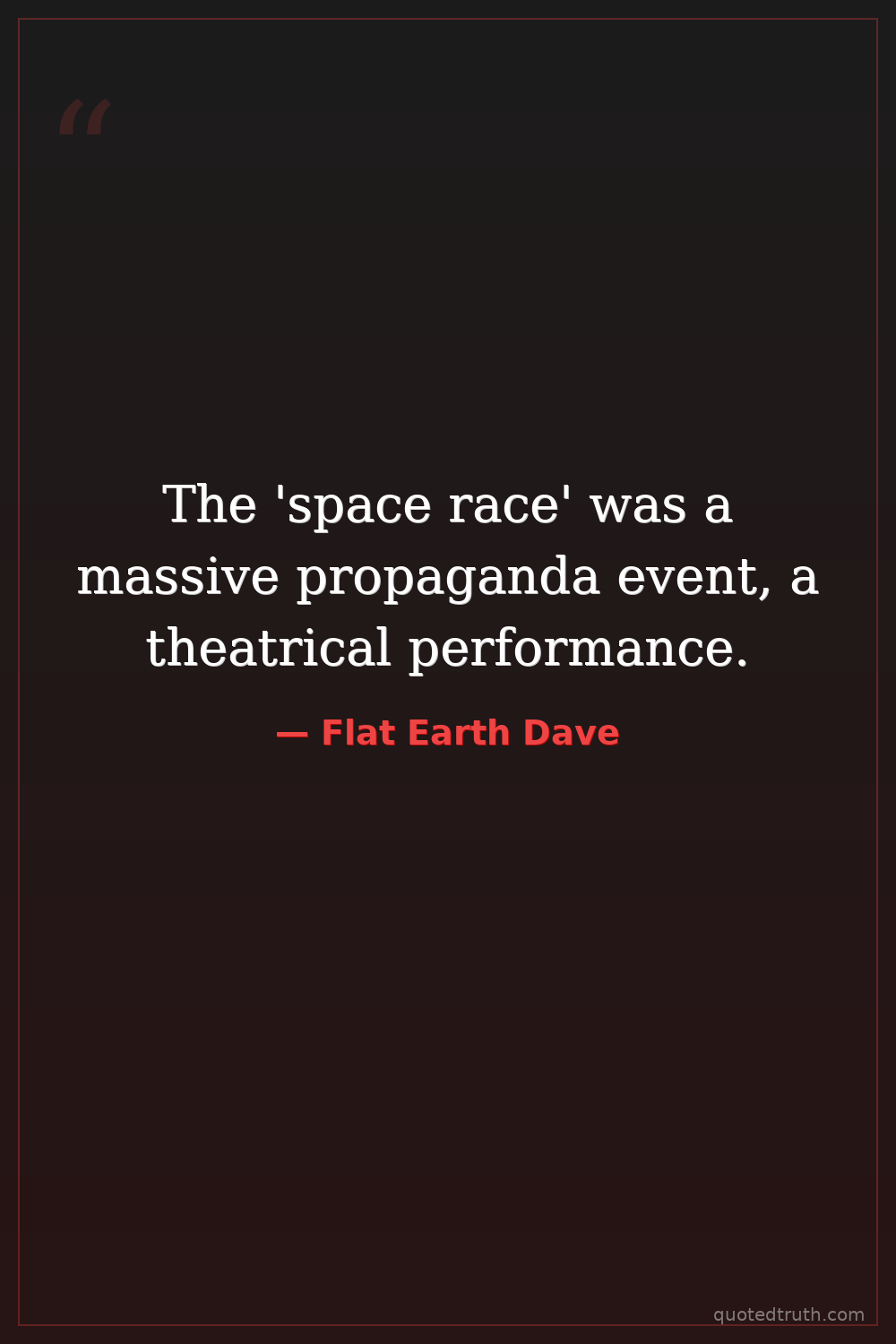 "The government is hiding the truth about the Flat Earth to control us and our perception of reality."