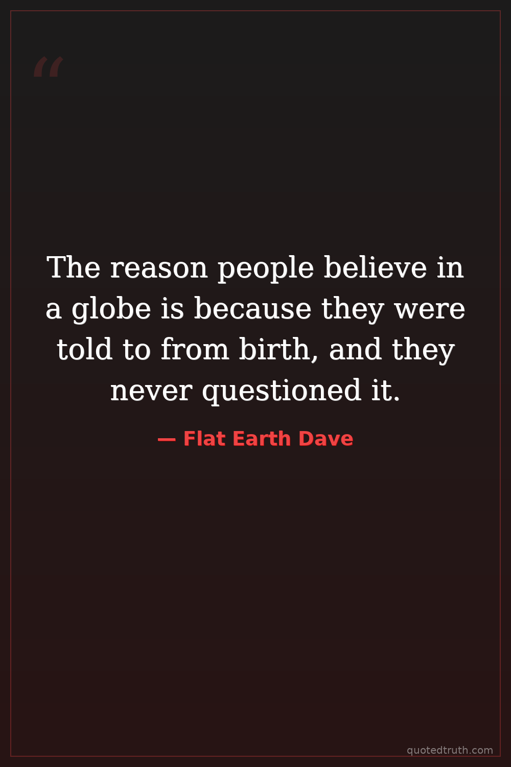 The reason people believe in a globe is because they were told to from birth, and they never questioned it.