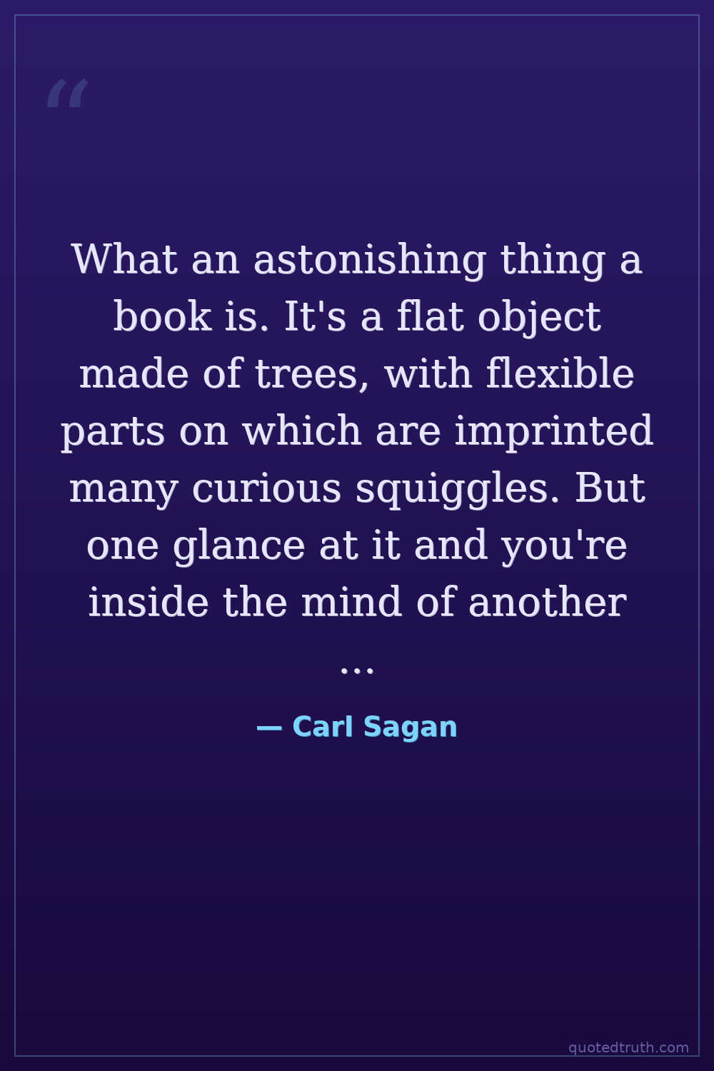 What an astonishing thing a book is. It's a flat object made of trees, with flexible parts on which are imprinted many curious squiggles. But one glance at it and you're inside the mind of another human being.
