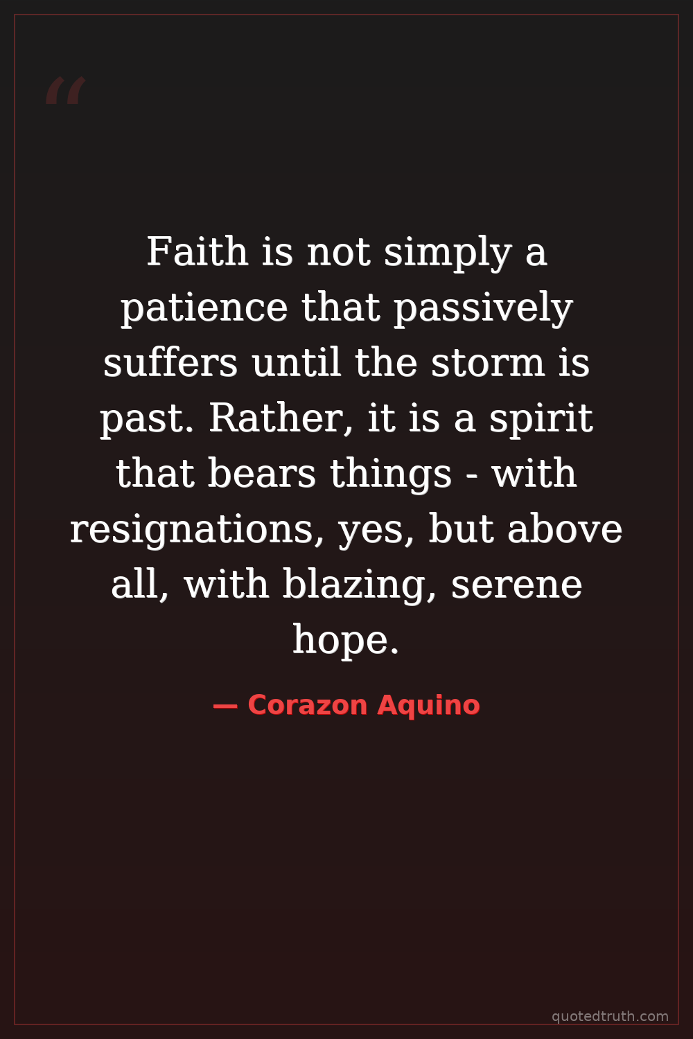 Faith is not simply a patience that passively suffers until the storm is past. Rather, it is a spirit that bears things - with resignations, yes, but above all, with blazing, serene hope.