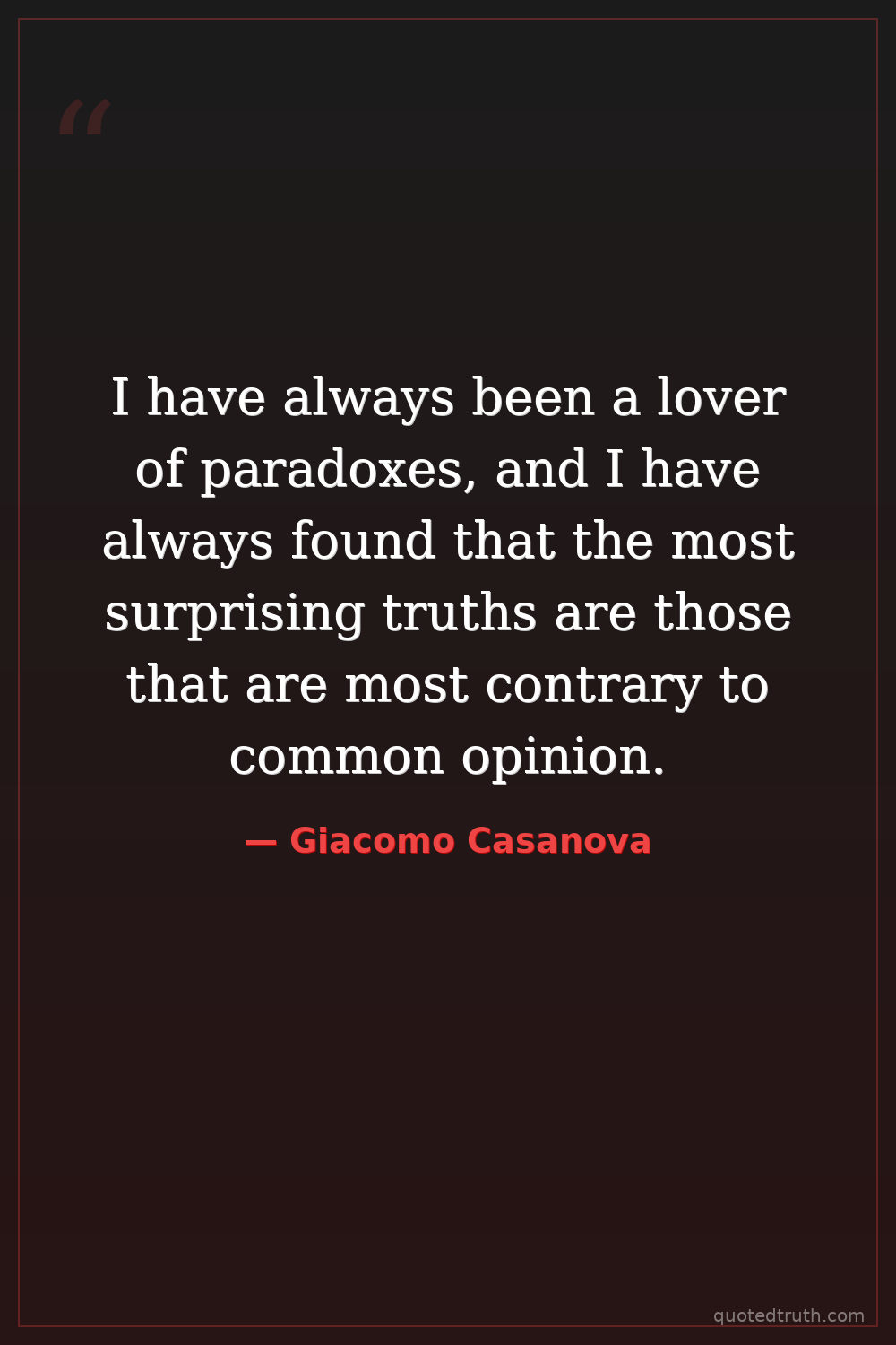I have always been a lover of paradoxes, and I have always found that the most surprising truths are those that are most contrary to common opinion.