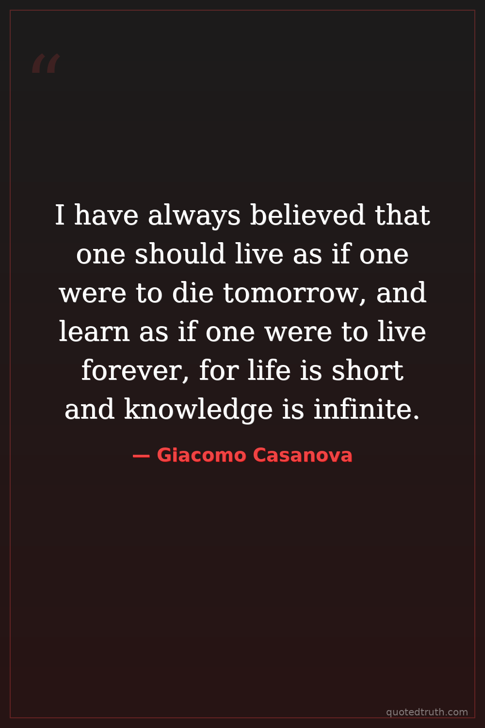 I have always believed that one should live as if one were to die tomorrow, and learn as if one were to live forever, for life is short and knowledge is infinite.