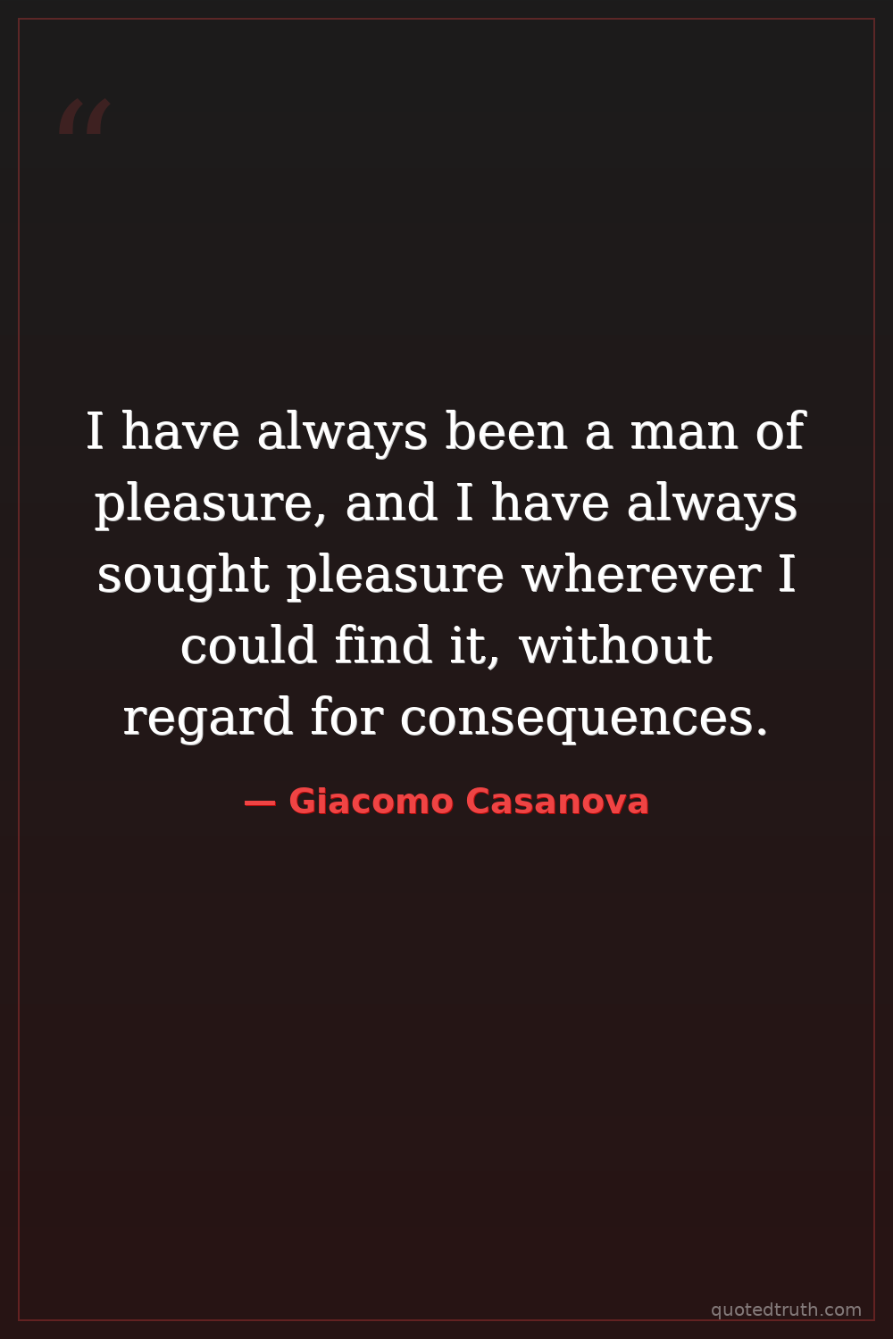 I have always been a man of pleasure, and I have always sought pleasure wherever I could find it, without regard for consequences.