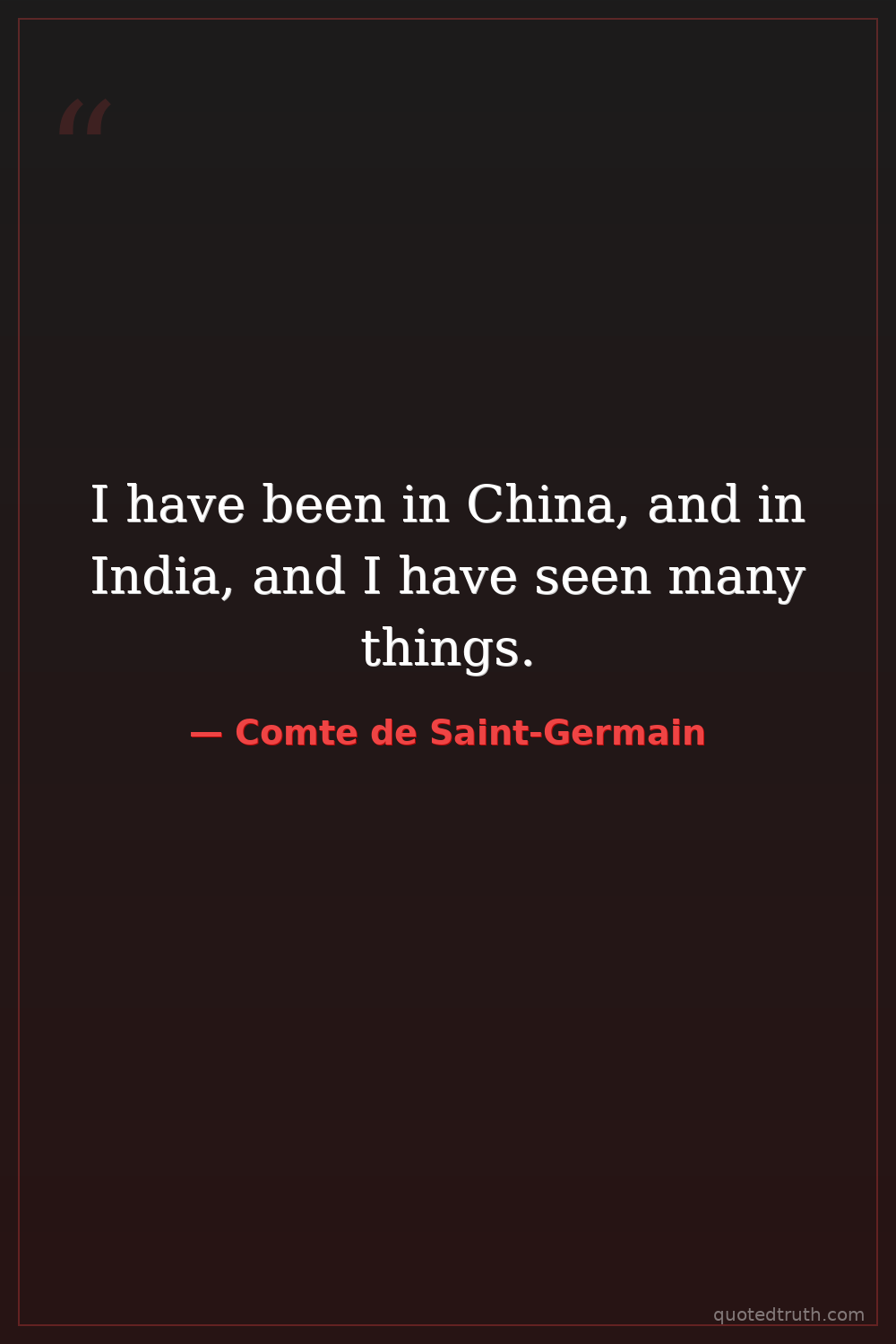I have been in China, and in India, and I have seen many things.